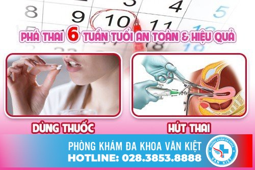 – Hiện nay, có hai phương pháp để phá thai mang lại hiệu quả cao đối với trường hợp 6 tuần tuổi đó chính là: Sử dụng thuốc và hút thai. Mỗi phương pháp đều mang lại một cách hiệu quả hơn. Tùy vào tình trạng thai nhi và cơ địa, sức khỏe thai phụ chuyên gia sẽ chỉ định phương pháp phù hợp.
